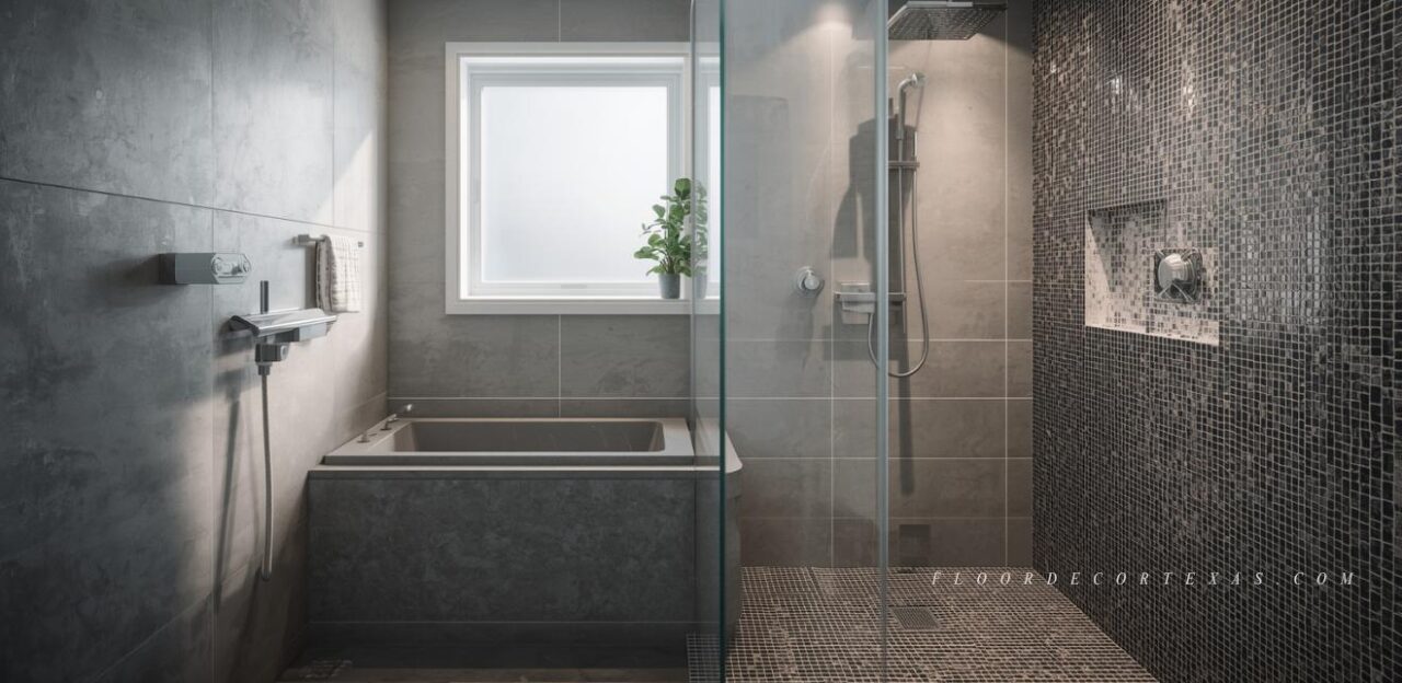 Use textured porcelain mosaics no larger than 2″×2″. Skip polished tiles completely. Even in low-use zones, a slippery surface is a risk not worth taking.